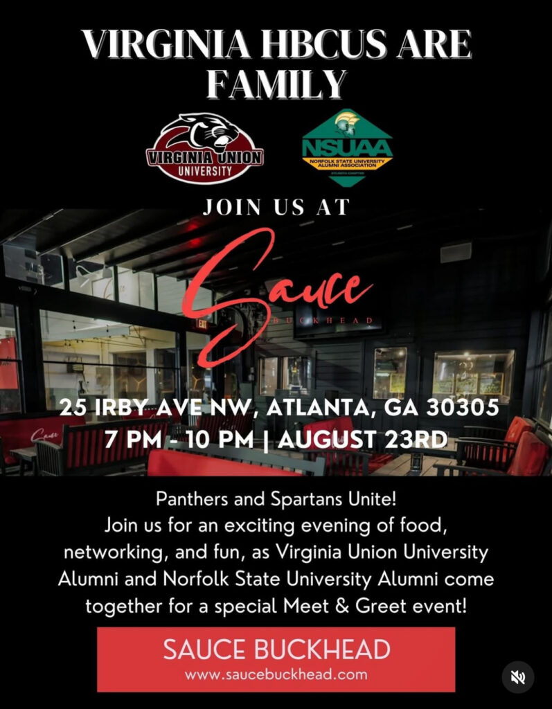 • Sat, August 23rd – VA HBCU Watch Party at Sauce 7pm -10pm