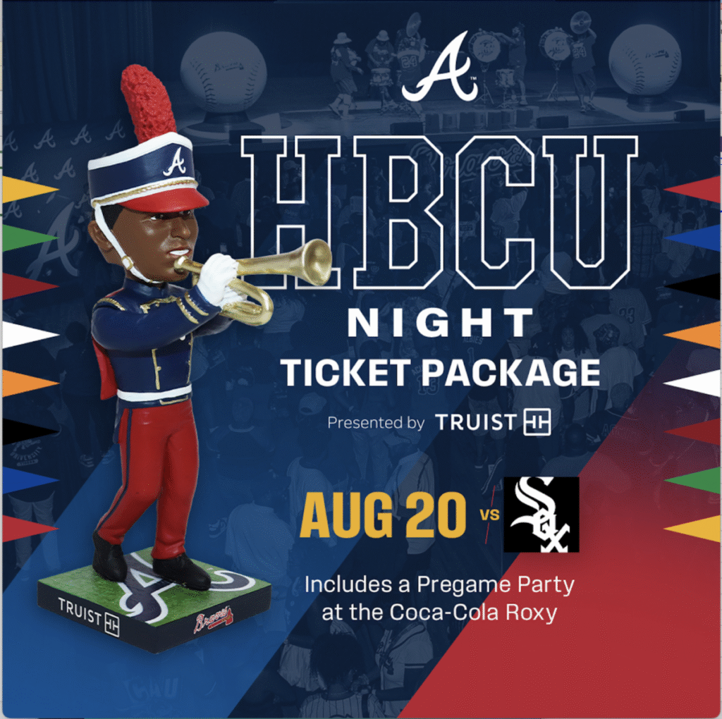 • Wednesday, August 20th – HBCU Alliance’s HBCU Night Atlanta Braves 5:15 pm (pre-game party)/7:15 pm (game begins)